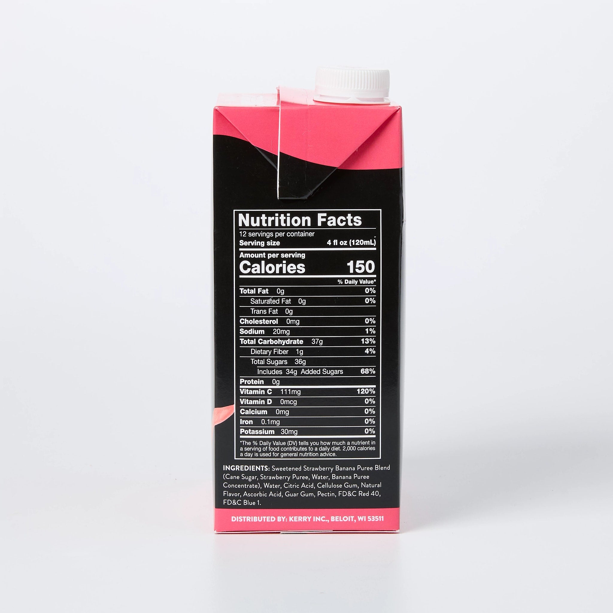 Sweetened Strawberry Banana Puree Blend (Cane Sugar, Strawberry Puree, Water, Banana Puree Concentrate), Water, Citric Acid, Cellulose Gum, Natural Flavor, Ascorbic Acid, Guar Gum, Pectin, FD&C Red 40, FD&C Blue 1.